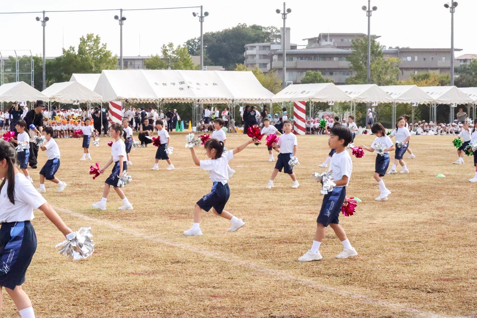 カラフルなチアポンポンを手に、総合グランドいっぱいに広がってダンスを披露しました。