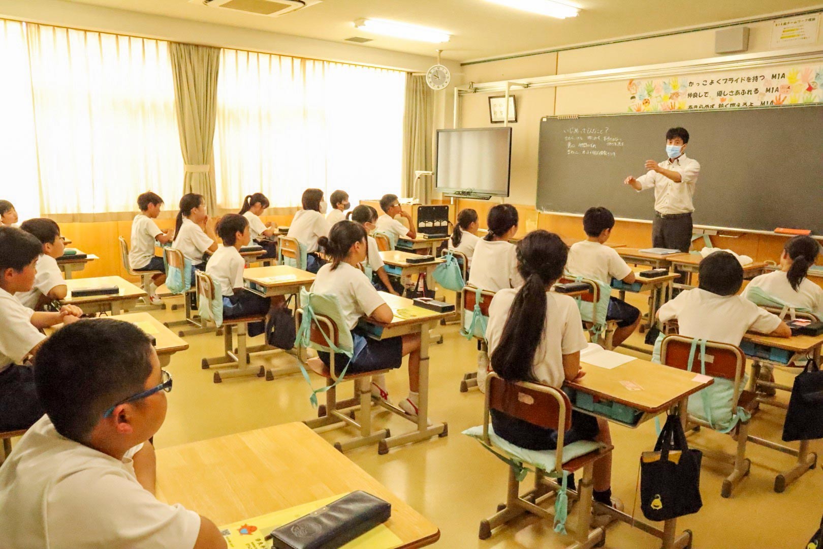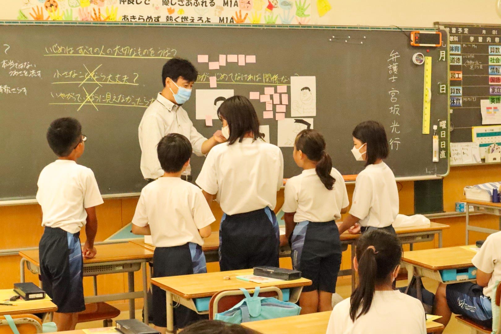 奈良法律事務所から宮坂光行弁護士にお越しいただき、M1(小学5年)生対象の「いじめ予防授業」を行いました。