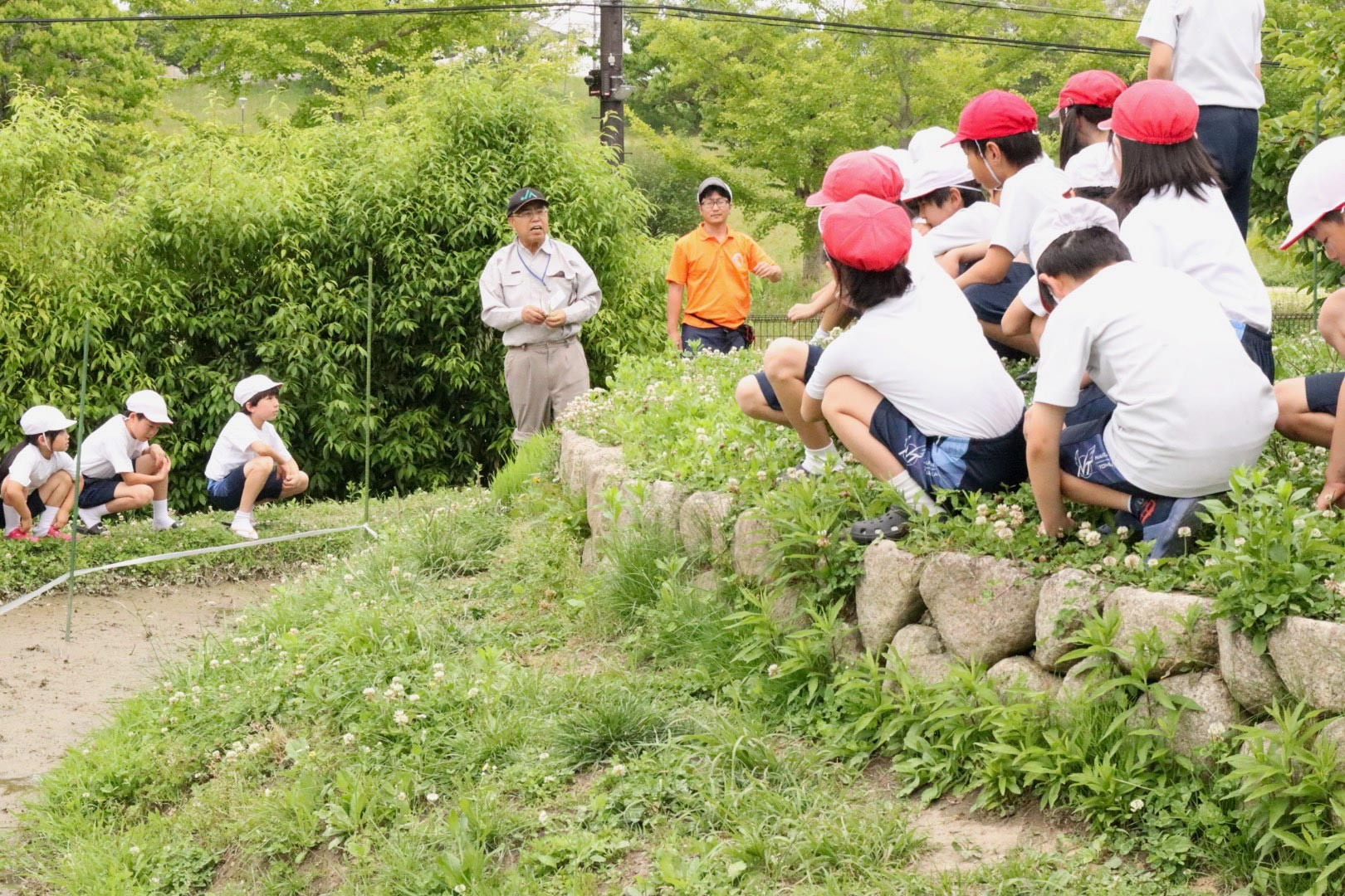 まずは先生から、「苗は3本ずつに分けて、それぞれ15cmほど間隔をあけて植えること、水に流されないようにしっかり泥の中に植え込むこと、植えた苗は踏まないように気を付けること」など注意点の説明がありました。