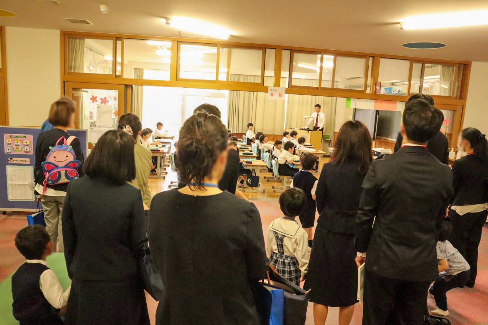 続いて、授業中の校内を自由に見学していただきました。各学年のフロアでは、国語、算数、理科、英語や音楽室でリズムや歌を学ぶ様子などを、お子さまと一緒にご覧いただきました。
