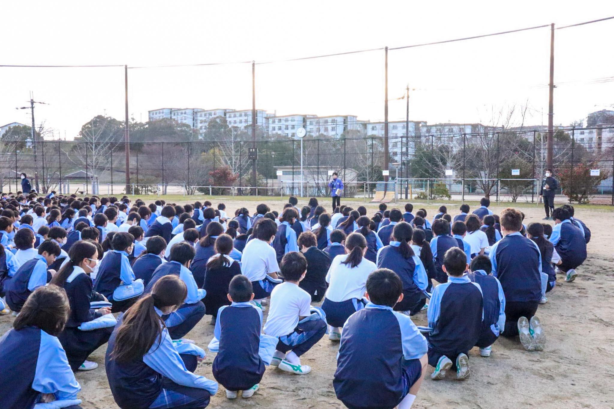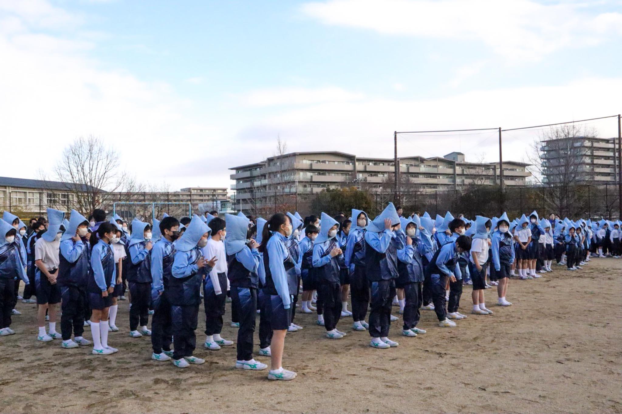 梅田校長から「お・は・し・も・て(押さない、走らない、しゃべらない、戻らない、低学年優先)を忘れないように」と話があり、また最後には「先日も能登で大きな地震がありました。早く復興されることをみんなで祈りましょう。そして私たちにも、いつ災害が訪れるかわかりません。今日の訓練を通して、いざという時に避難できる力をしっかりと身につけましょう」とお話がありました。