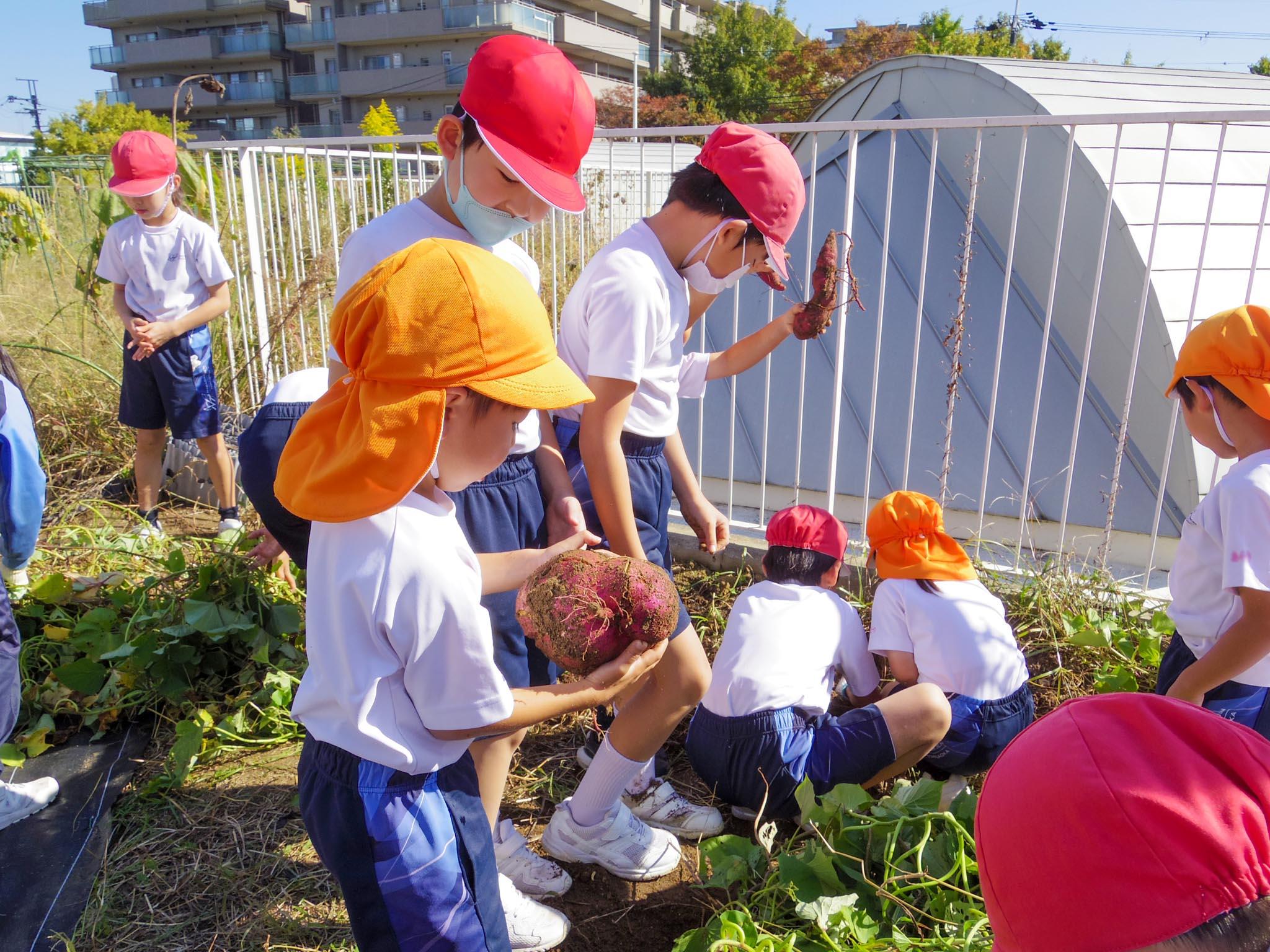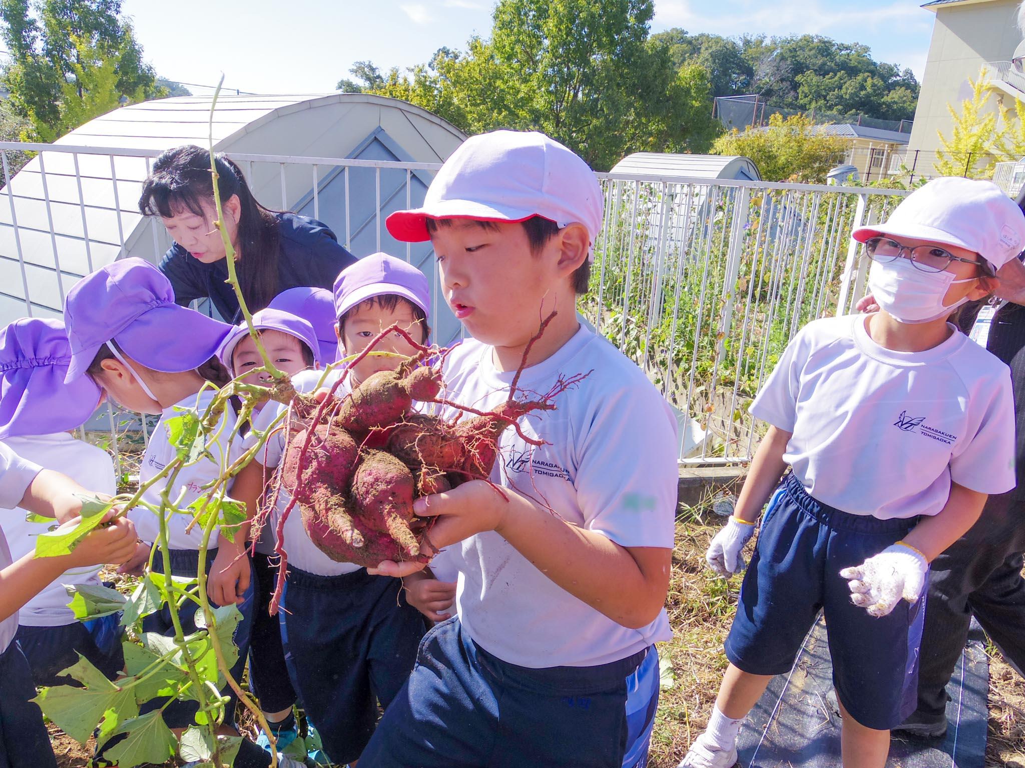 校内の畑でPP2(年中)の園児たちと一緒にいもほりをしました。