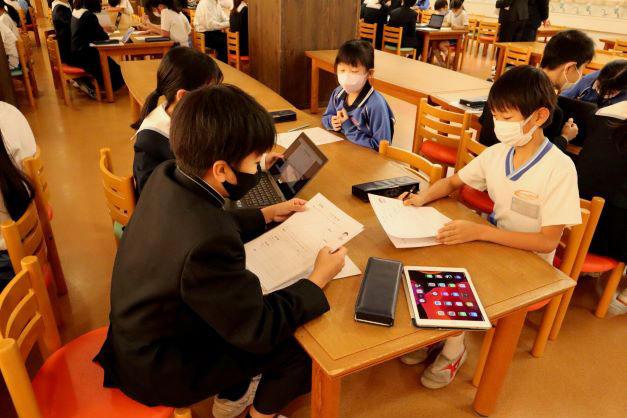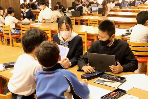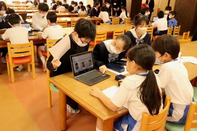 講座は4名から5名のグループに分かれ、M2生が情報モラルについて学んできた内容を、P3生に伝えるという方法で実施しました。