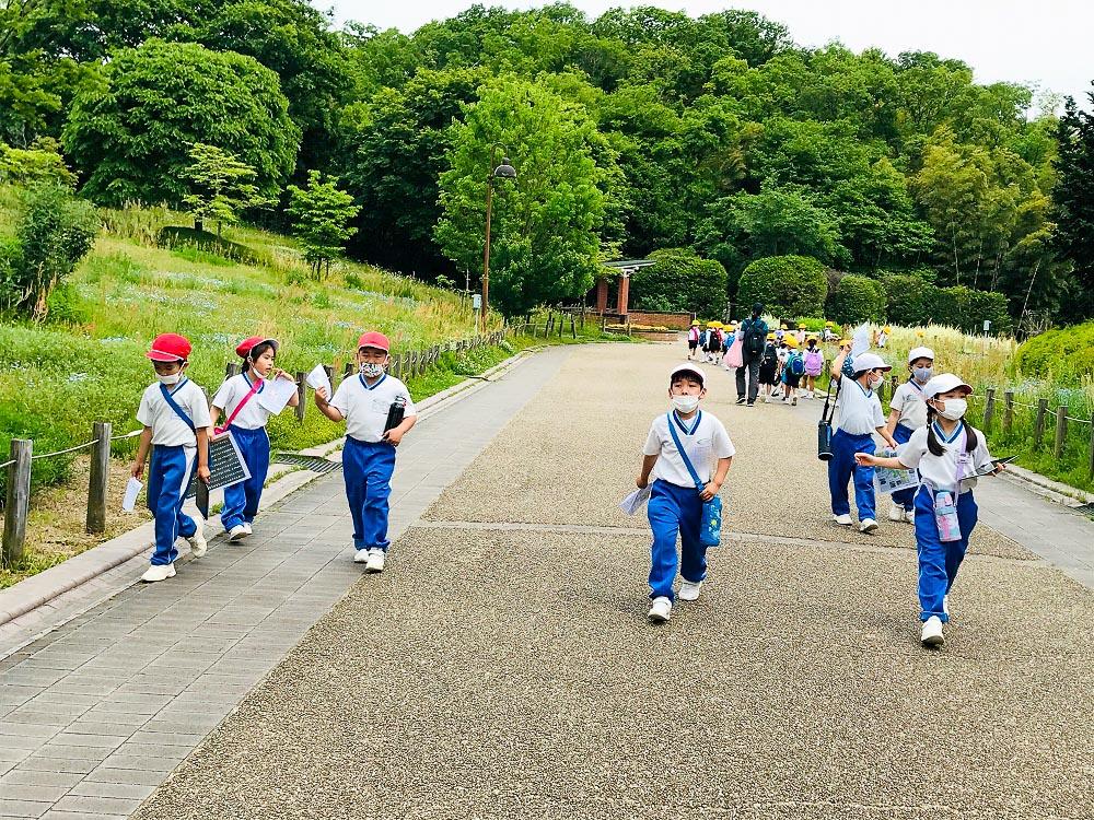 晴れ渡る青空のもと、P2生(小2)は馬見丘陵公園へ遠足に行きました。