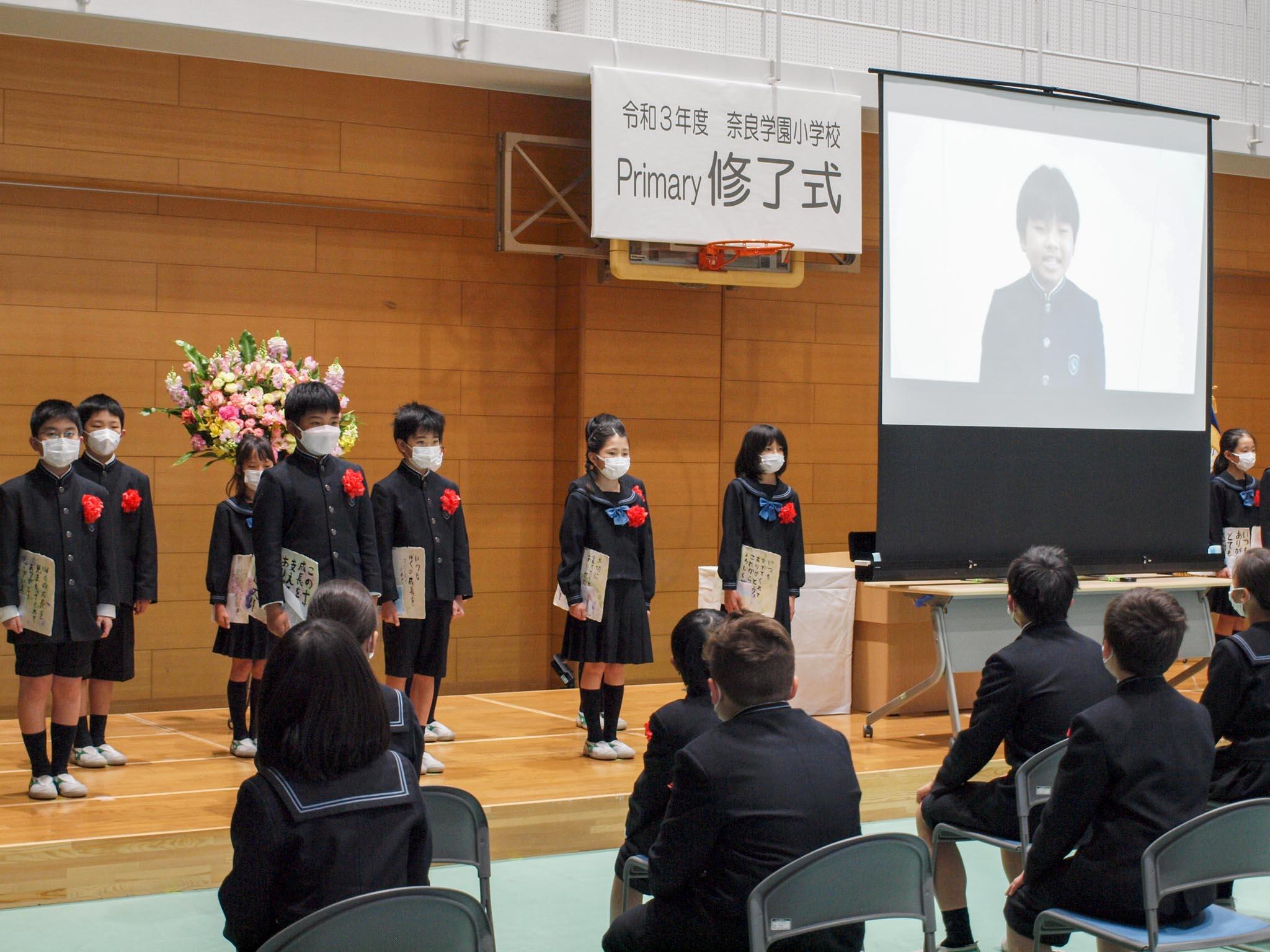 最後に4年間の思い出スライドを鑑賞。さまざまな思い出の出来事や、自分たちの成長を振り返りました。4月からはMiddle1年生としてさらに大きく羽ばたいてくれることでしょう。