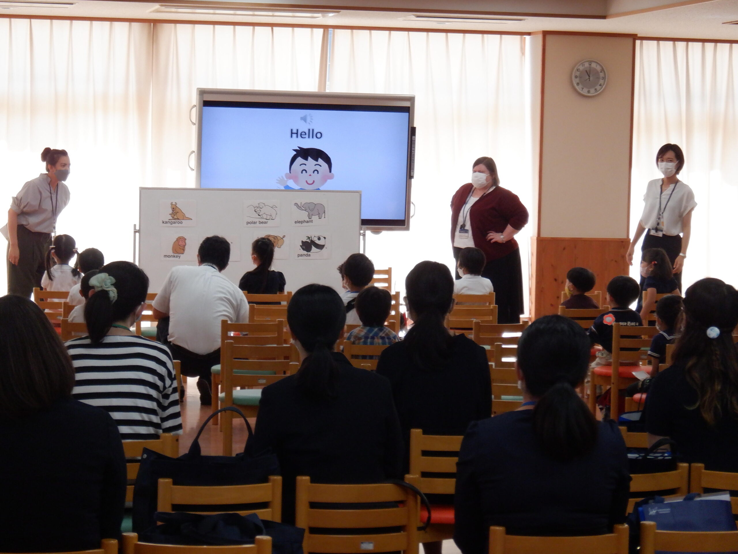 英語は、「Zoo Animals!」をテーマに、コミュニケーションの授業に取り組みました。カードゲームやダンスで動物の単語を学びます。