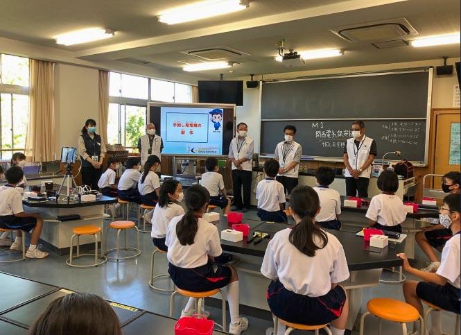 今回は関西電気保安協会の方に来ていただき、発電のしくみと手回し発電機の作成をおこないました。