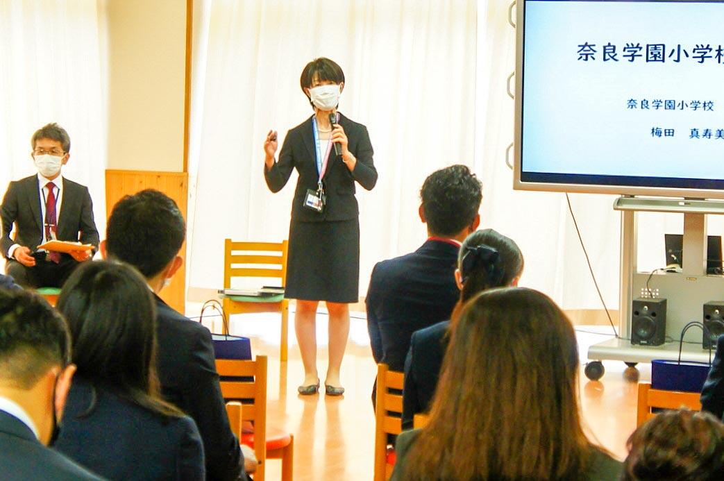 一方、保護者の皆様には、梅田校長から本校の教育内容や取り組みについて紹介しました。また、日比教頭が、小学校受験についての話や子どもたちがチャレンジしているテストの解説を行いました。