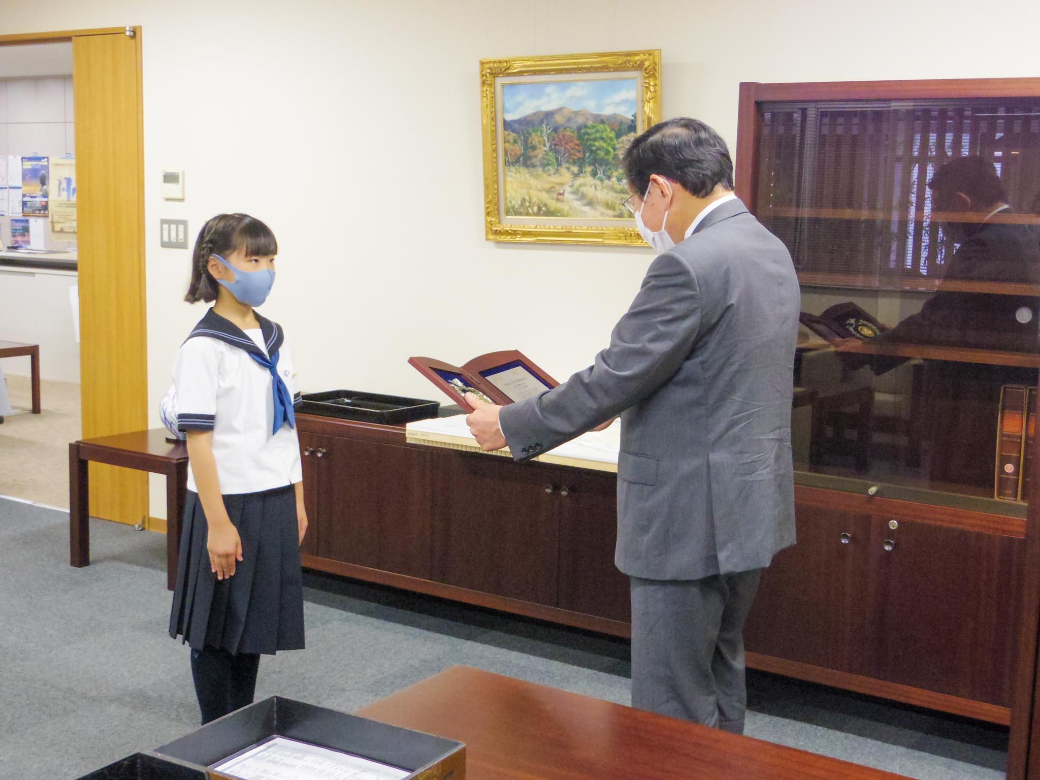 表彰を受けて江川さんは「私は色んな賞をとってきて、どのようなことをしたらいいか考えてきました。これからはもっと色々なことにチャレンジしていきたいと思います」と話しました。
