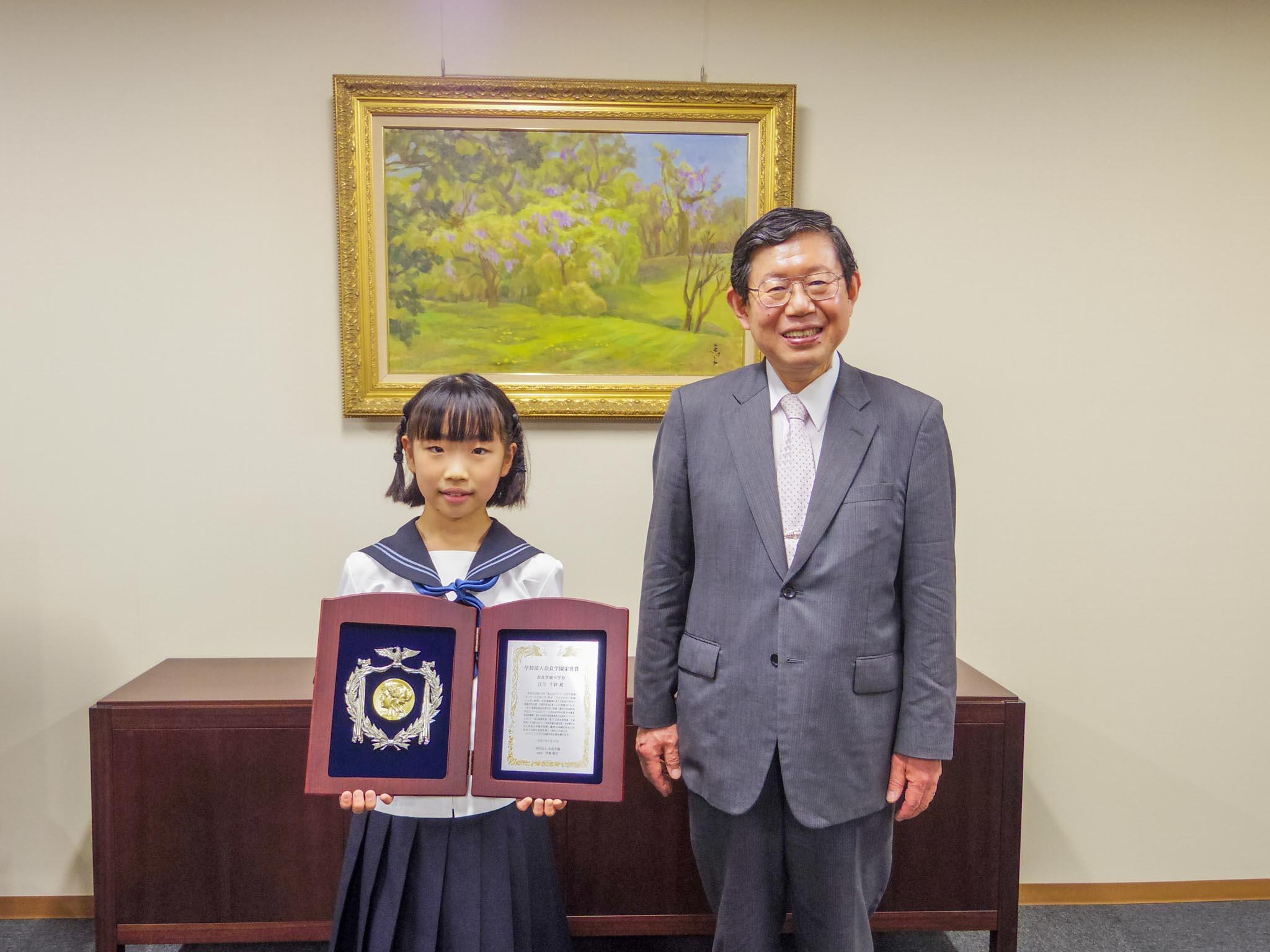 また、塩野直道記念第8回「算数・数学の自由研究」作品コンクールでは「小学校高学年の部 中央審査委員敢闘賞」、第66回青少年読書感想文奈良県コンクールでは「毎日新聞社賞」、第77回奈良県児童・生徒発明くふう展では「奈良県議会議長賞」を受賞しています