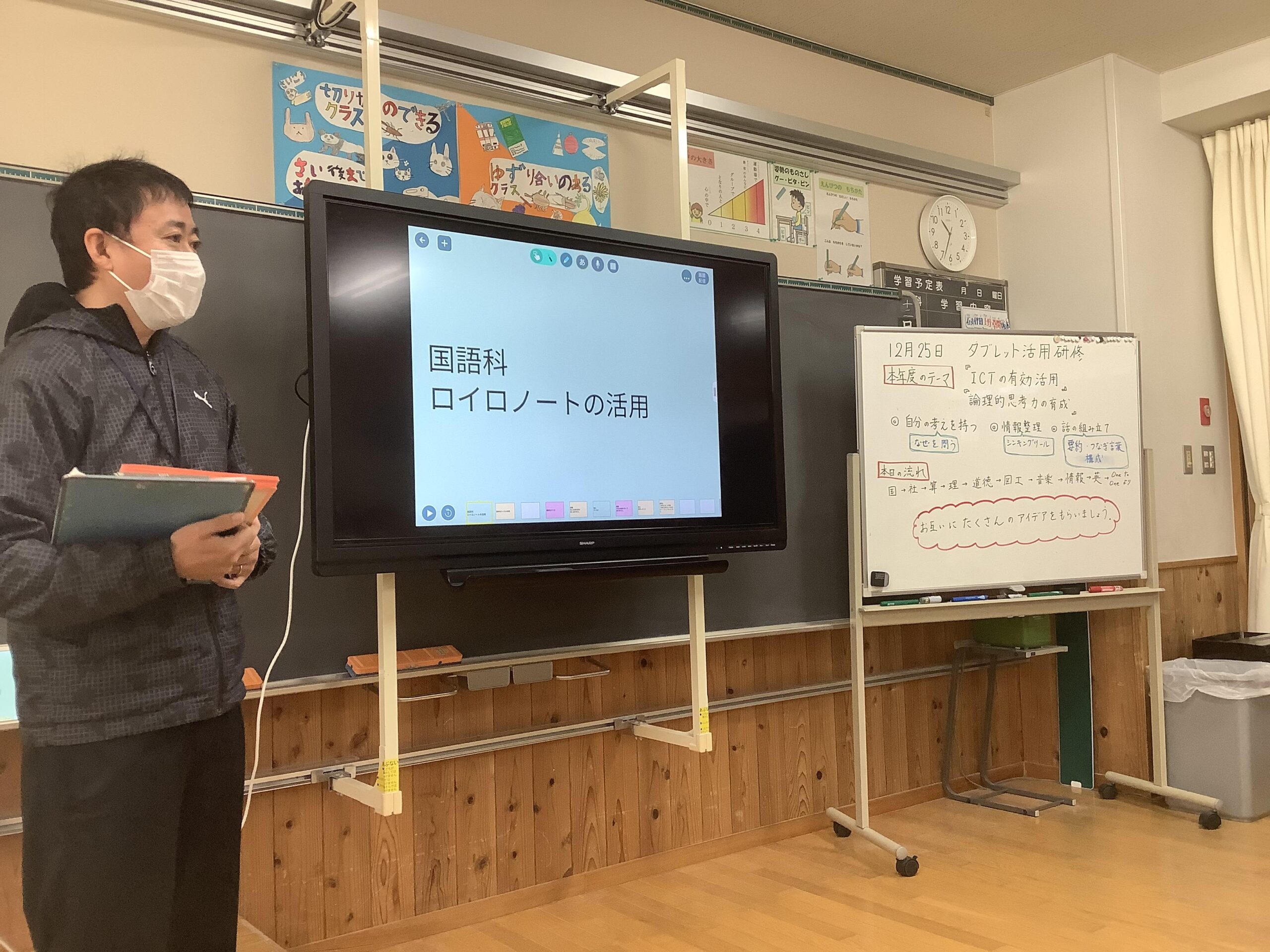 12月25日(金)に学内で小学校教員研修を行いました。ICT教育の実践について各教科担当者が発表をしました。