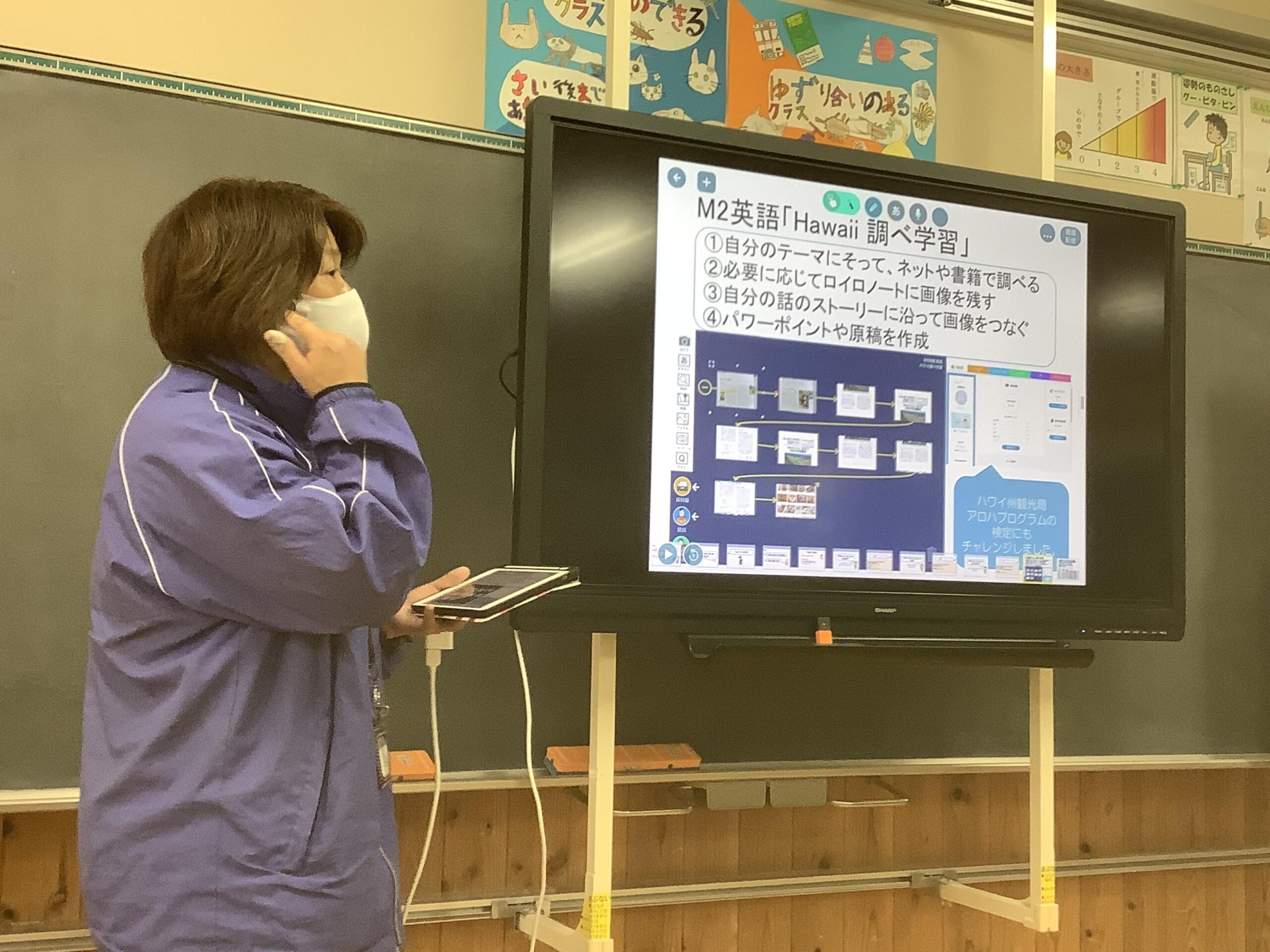 タブレットを一人に一台持って行うone to oneの取り組みが進められる中、本校の子どもたちがよりスムーズに学びを進めるには、ICT機器をどう活用すればいいか、各教科で知恵を出し合いました。