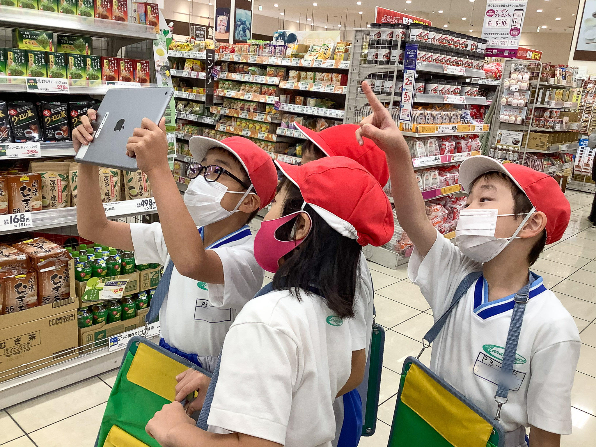 今日は、P3(小3)生が社会の勉強でスーパー見学に行きました。行き先は、登美ヶ丘イオンです。