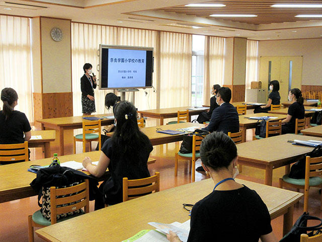 同時に、保護者の皆様には校長より本校の教育内容や取り組みについて紹介したあと、教頭より小学校受験について、また今回のテスト解説を行いました。どの内容についても非常に熱心に聞いていただきました。