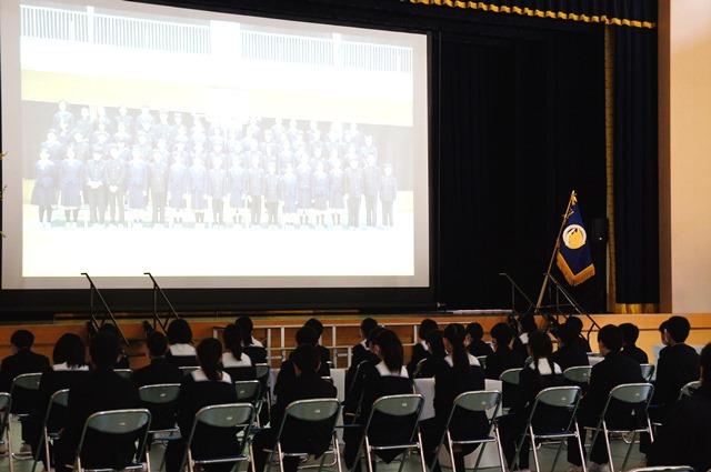 続いて、在校生からの送辞を上映しました。答辞も同じくスクリーンで上映し、卒業生全員で、在校生や家族、教職員に感謝のことばや歌を贈りました。