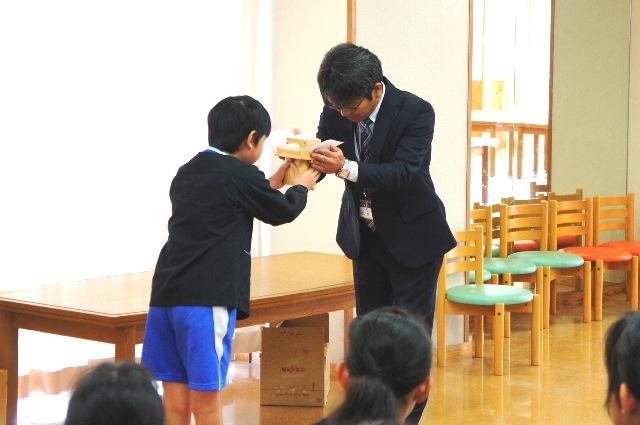 続いて飯田さんから「泥まみれになりながら田植えをし、雑草抜きをして、夏にはかかしを作ったり網を張ったりしながら、たくさんのお米を収穫することができました。みなさんを育ててくれたご両親、学校の先生方、日頃の食べ物を作ってくださっている農家のみなさんや社会の人々、そして何よりも立派に育ってくれたお米たちに心から感謝をしましょう。常に、ありがとうの気持ちを持ち続けることが大切です」とお話をしていただきました。