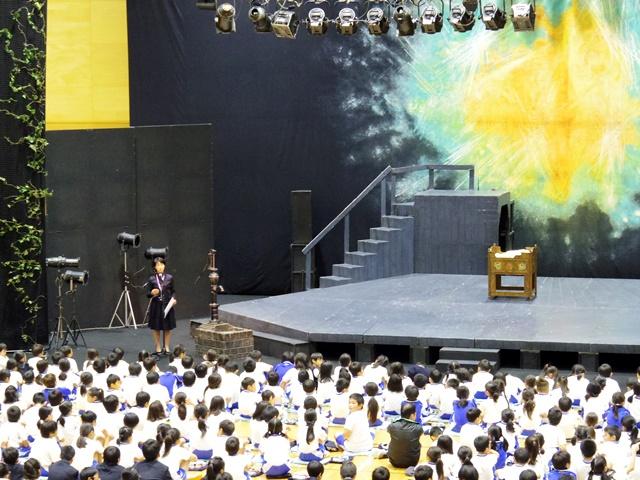 11月14日(木)、P1(小1)生からM4(中2)生を対象に芸術鑑賞会を行いました。今年は「東京演劇集団 風」による「ヘレン・ケラー ~ひびき合うものたち」の上演です。