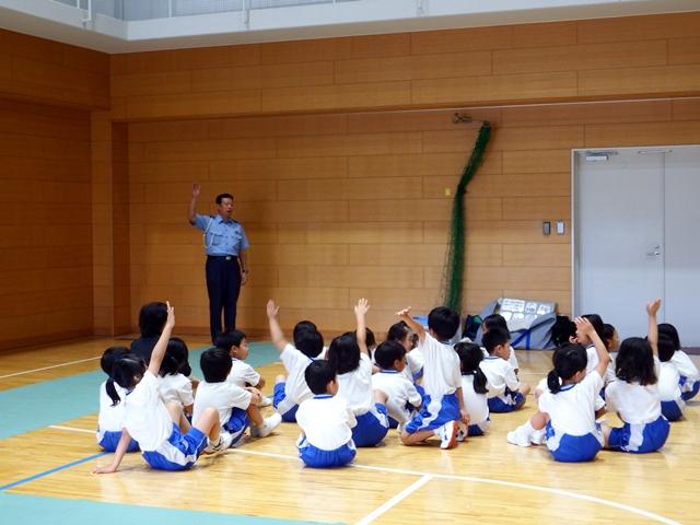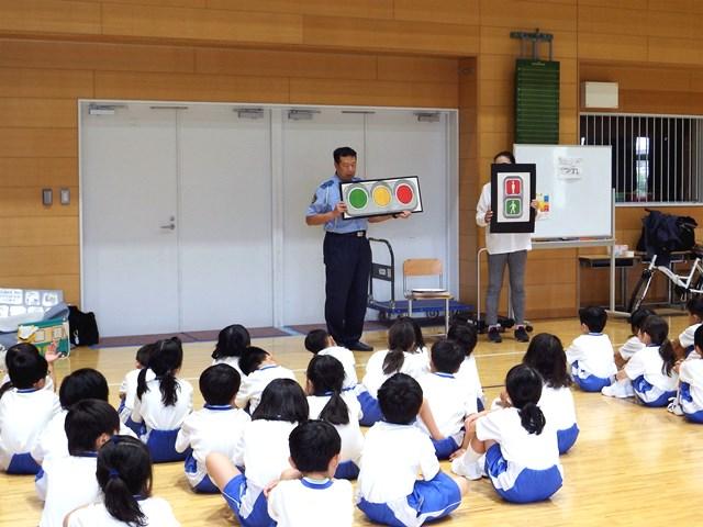 7月5日(金)、奈良西警察署交通課、奈良市役所市民安全課の方々にお越しいただき、P1(小学1年)生を対象に交通安全教室を行いました。