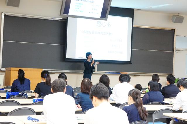 まず大講義室で梅田校長が挨拶。本学園の理念である「自ら生きて、活きる」を紹介し、他校にはない一貫教育の優れた点について伝えました。