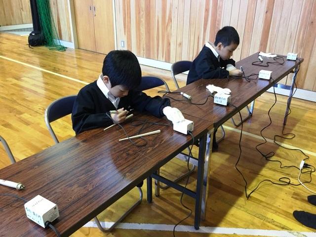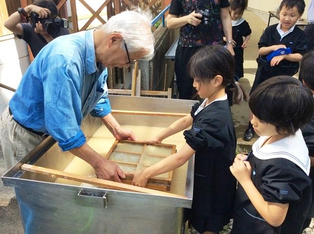 2日目は旧吉野山小学校で箸造り体験と紙漉き体験を行いました。紙漉きでは生活科で作った押し花を入れて、オリジナリティーの高い作品が出来上がりました。昼食後は蔵王堂にてご講話をいただき、帰路につきました。