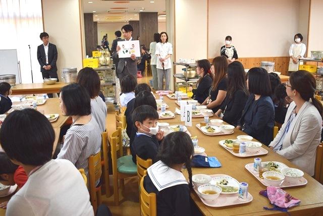 梅田校長の挨拶のあと、給食を担当している方には献立の内容や、子ども時代の味覚の傾向などについて説明がありました。