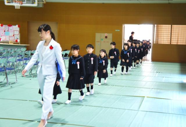 奈良学園登美ヶ丘中高室内楽部の演奏が会場に流れる中、大きめの制服が可愛い新一年生54名が、緊張した面持ちで入場してきました。