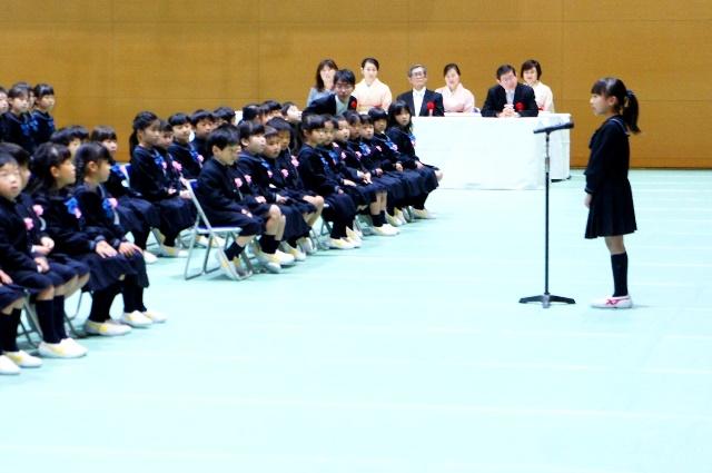 「これからみんなで仲良く頑張ります」と新入生代表が力強く誓いの言葉を述べ、それを受けて在校生代表から「私たちと一緒に楽しい学校生活を送りましょう」とお迎えの言葉を伝えました。