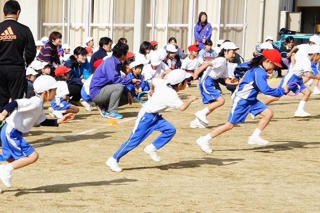 本番は、予選1回戦13チーム、予選2回戦14チームが競い合いました。低学年から始まり、高学年につないでいきます。「頑張れ!」「よっしゃ!」とチームメイトからの声援で盛り上がっていました。
