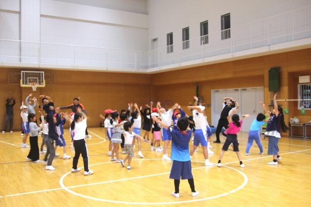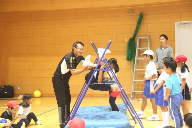 10月27日(土)、小学1年~小学4年生までの希望者とその保護者の方々を対象に「親子でわくわく!体づくり!」を開催しました。今回は、本校の希望する児童と登美ヶ丘小学校、東登美ヶ丘小学校にもお声をかけて約70名が参加しました。講師には常葉大学准教授で(有)きのいい羊達代表の磯谷仁先生をお迎えし、親子で体づくりを学びました。