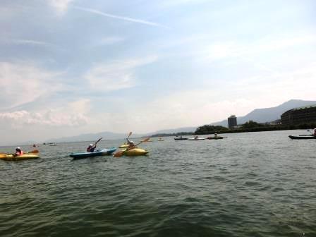1日目には、ドラゴンボートやカヌーに乗船し、友だちと協力することの大切さや琵琶湖に生息するヨシなどについて学びを深めることができました。