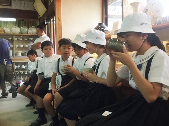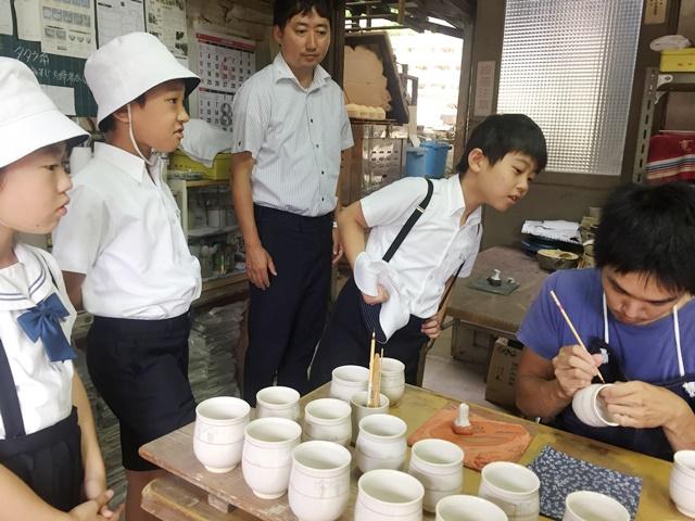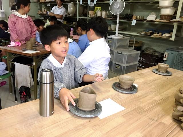 7月28日に、P4(小4)生が社会見学に行きました。赤膚焼窯元 大塩昭山さんでの「てびねり湯呑みづくり(陶芸)」です。