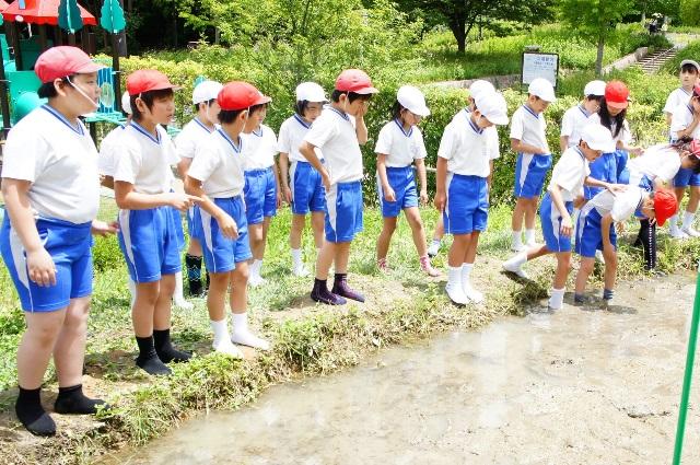 6月13日(水)、P4(小学4年)生がキャンパス内の棚田で田植えを行いました。