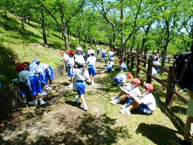 5月11日(金)、夏を思わせるような暑い日。P1生(小1)は春の遠足で生駒山麓公園に行きました。