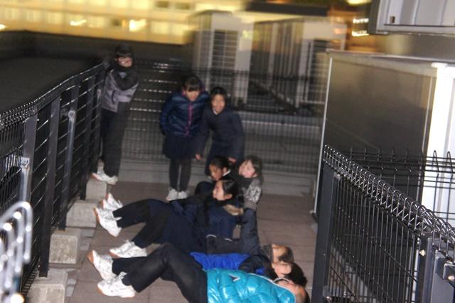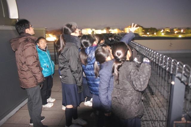 冬の星々がきらめいている寒空を眺めて、「普段、何気なく空を見ていたけれど、今見たらすごくきれい」と声が上がり、寒さも忘れて屋上に寝転び、空を眺める児童もいました。