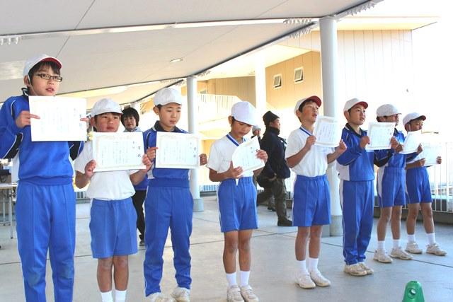 走り終えた後は、各学年、男女それぞれ1位から8位までの児童に、梅田校長から賞状が授与されました。また、練習で特にがんばった児童に「特別賞」が贈られました。