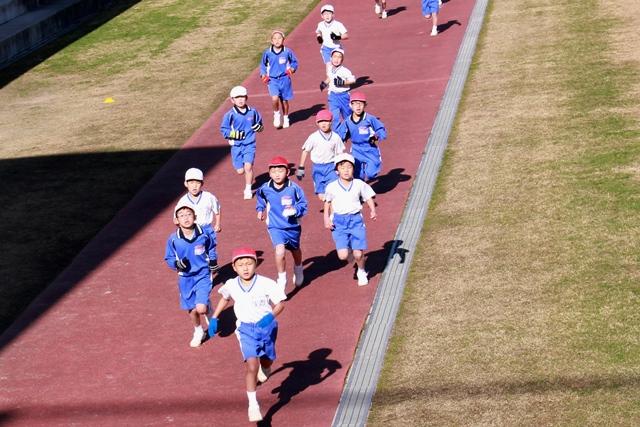 最初はP4生が、「寒さには負けないぞ~!」と、総合グラウンドをスタートし、アップダウンのあるプロムナードを折り返し、総合グラウンドにフィニッシュするコースを2周する2.1kmを元気に走破しました。
