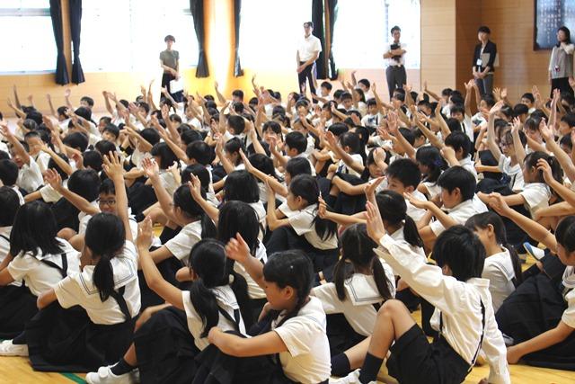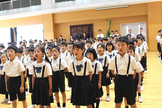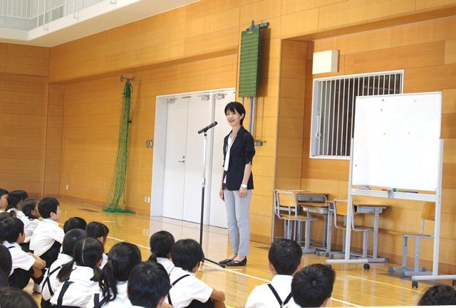 「夏休み前に皆に必ず何かやり遂げようって約束したこと、実行したかな」の問いかけに、子どもたちは元気よく「はい」と答え、手を挙げました。「一人ひとりの力は小さくても、みんなが力を合わせれば大きな力になります。お互いをしっかりと思いやる心を大切にしながら、新しい学期をみんなでつくっていきましょう」と子どもたちに伝えました。