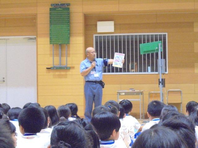 7月7日(金)、奈良西警察署交通課、奈良市役所市民安全課の方にお越しいただき、P1(小学1年)生からP4(小学4年)生を対象に交通安全教室を行いました。