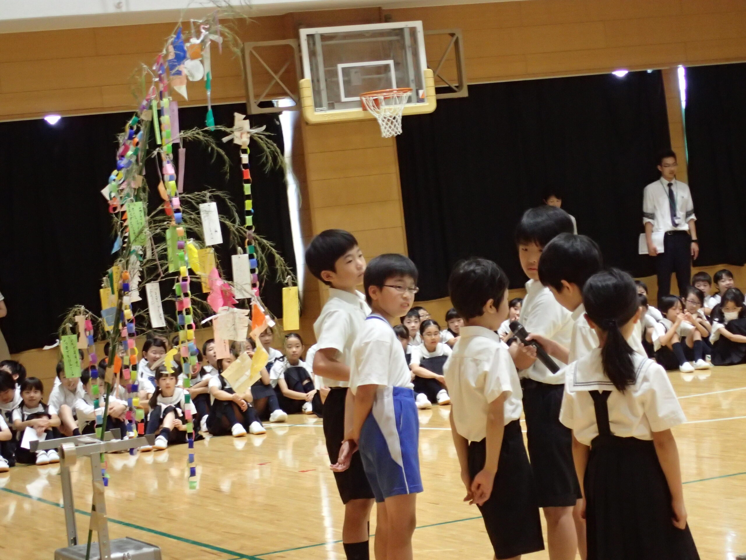 7月10日(月)の朝礼で、P4(小4)生の企画委員会が主体となり、Primary七夕集会を開きました。