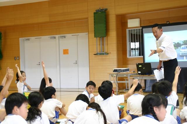「こんなときどうする?」をテーマに、日常でよくある場面についてみんなで考えました。知らない人に声をかけられたとき、子どもだけで留守番していて電話がかかってきたとき、いつも通る道のそばに車が止まっているときはなど、どうすればいいか手を挙げて発表しました。