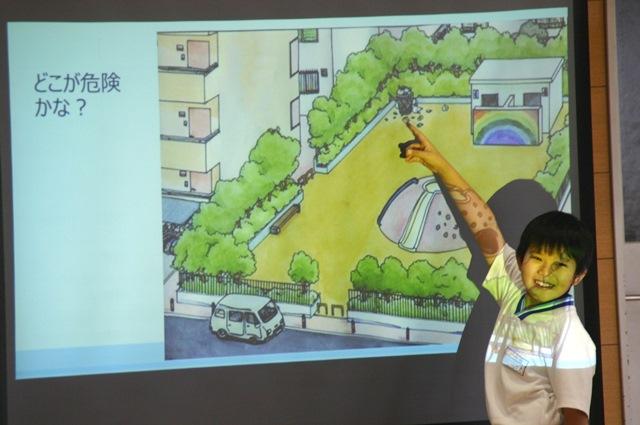 また、公園ではどのあたりが危険な場所かを当てるなど「なんだかおかしいな、変だな」と思ったら避ける、という行動の大切さについて学びました。