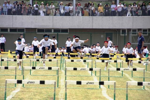 また、午後は陸上競技の決勝と学年別競技を行いました。二人三脚からの玉入れ、借り物競走、カウボーイのように騎馬に乗っての競技や、二人三脚からはじまり最後は六人七脚なるレースと、各学年趣向を凝らした競技に、会場は熱気にあふれました。