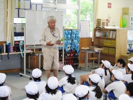 まずは米作りの指導をしていただいている「ならグリーンファーム」の飯田さんのお話を聞きました。イネを植える時の注意点などを教えていただきました。
