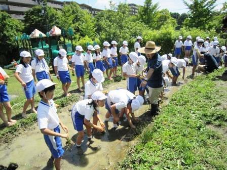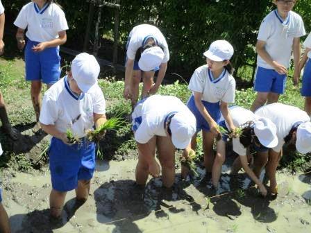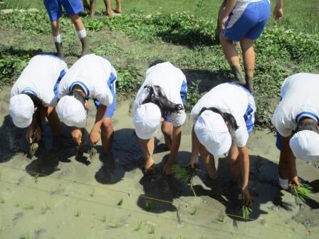 6月9日(金)に、P4(小4)生が田植えを行いました。開校以来、続いている体験活動です。