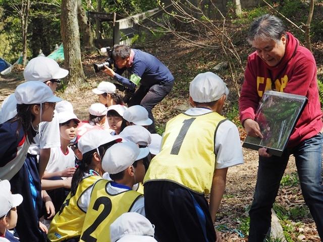 指導員の方から、なるかわの自然について教えていただいた後、各クラス6グループに分かれて、コマ地図を見ながらウォークラリーをしていきました。