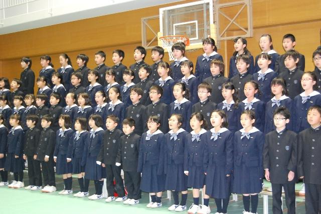 P体育館でのオープニングはM1(小学5年)生による合唱でスタート。児童たちは本学での学校生活の様子を紹介した後、美しいハーモニーを響かせました。