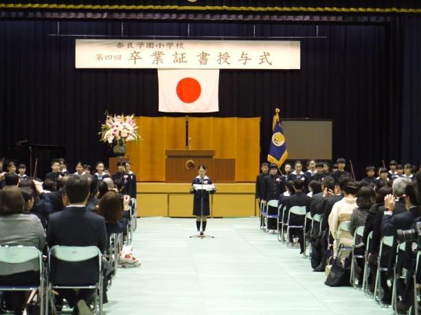 第四回「奈良学園小学校卒業証書授与式」を挙行しました