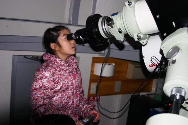その後、校庭で観測を続けるチームと、Y棟屋上に設置されている天体観測ドームの中にある口径150mmの屈折望遠鏡で観測するチームとに分かれました。