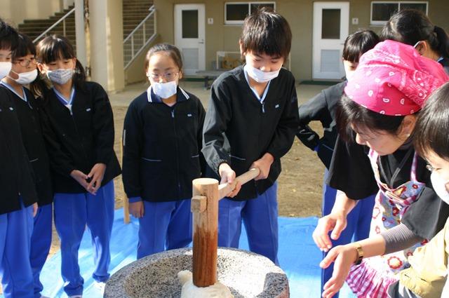 11月18日(金)、P4(小4)生が収穫祭と餅つきを行いました。