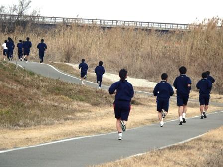 参加した児童や生徒は、精華町の「むくの木センター」のそばに広がる木津川堤防の広場を発着点に、M1・M2(小学5年・6年)は4キロ、M3・M4(中学1年と2年)は9キロ、Y1・Y2・Y3生(中学3年から高校2年)は11キロを走りました。このコースは川沿いの平坦に見える道のようですが、実際は見かけ以上に起伏があります。